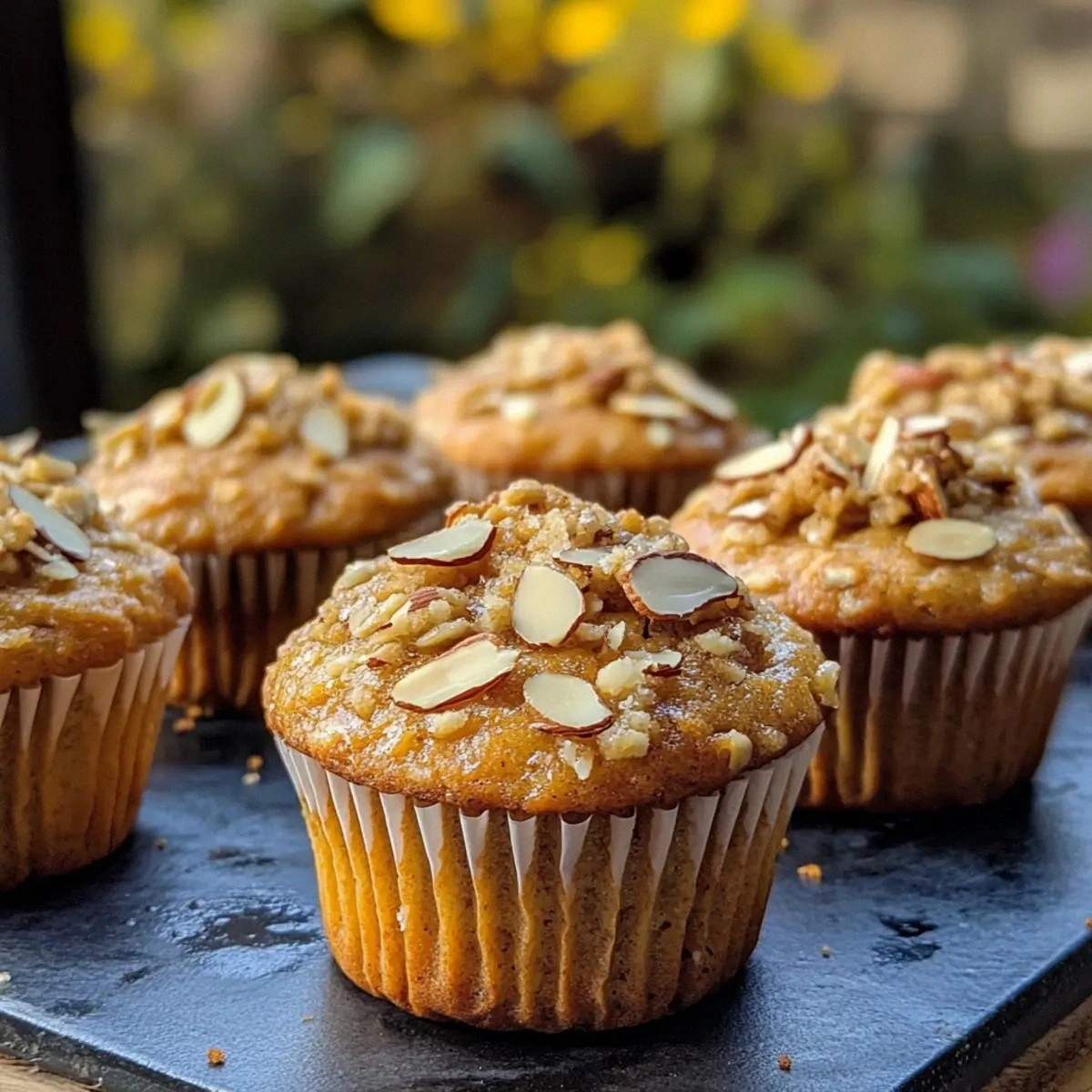 The sliced almonds on top add a satisfying crunch and a caramelized finish. The cinnamon and vanilla infuse the batter with warm, aromatic depth. The baking powder and eggs lift the muffins without making them airy, ensuring a dense yet tender crumb. If you’re craving a sweeter finish, a dusting of powdered sugar after cooling adds a subtle touch.