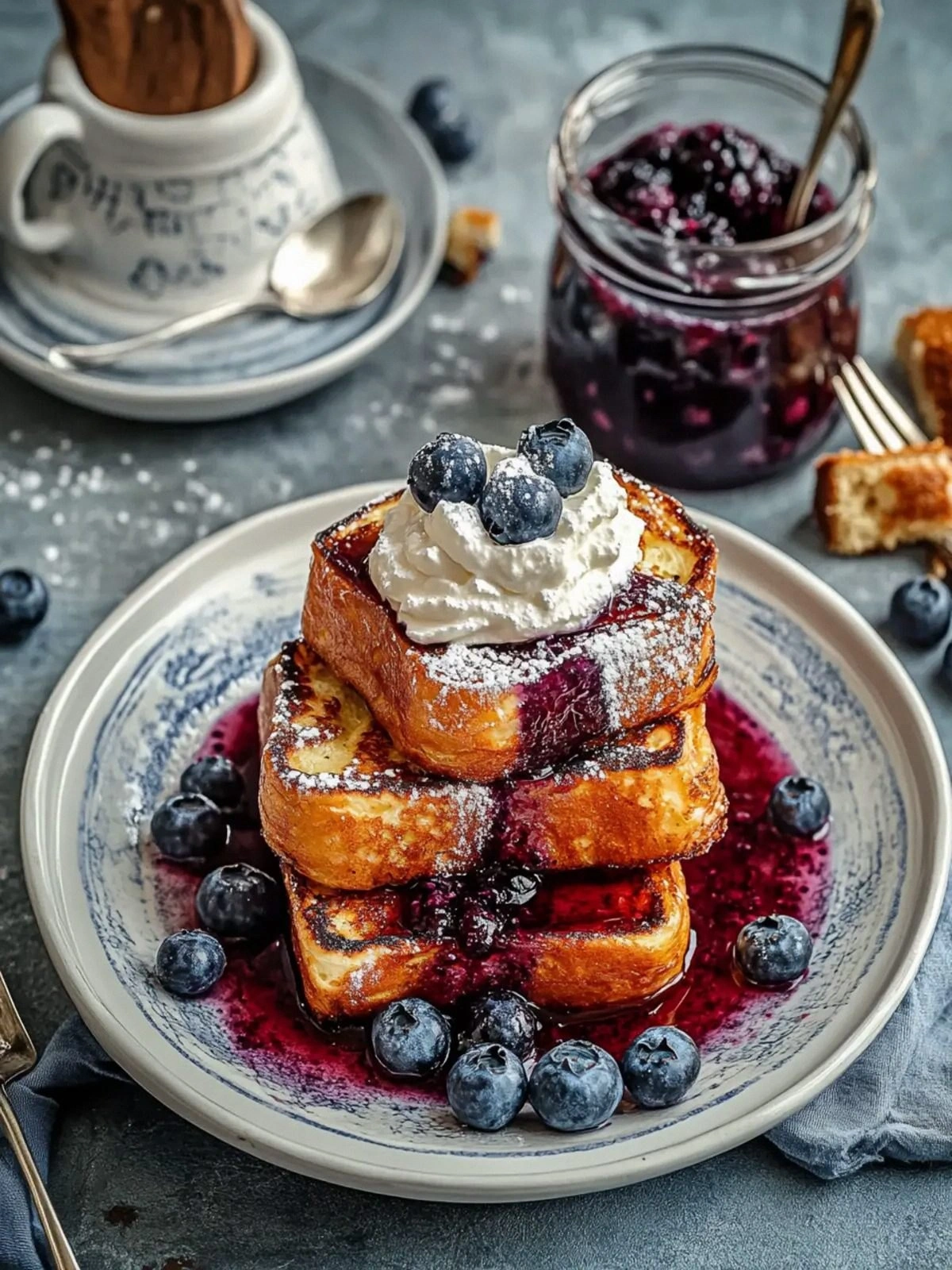 What makes this version stand out from every other French toast recipe I’ve tried? First, it uses thick‑cut brioche, which soaks up the custard without falling apart. Second, the custard is infused with a delicate vanilla‑egg base that gives depth without overpowering. Third, the blueberry compote is a bright, tangy counterpoint that keeps the dish from feeling heavy. Fourth, a dusting of powdered sugar and a splash of lemon juice on the compote add a finishing touch of elegance. Finally, the whipped cream topping turns a simple breakfast into a brunch‑worthy experience that will leave your guests asking for seconds. I dare you to taste this and not go back for seconds.